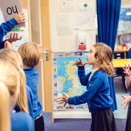 We start the systematic teaching of phonics in Reception. The children learn to recognise the shape of letters and the sound they make. This is essential for reading, but it also helps children learn to spell well. We teach the children simple ways of remembering these sounds and letters.